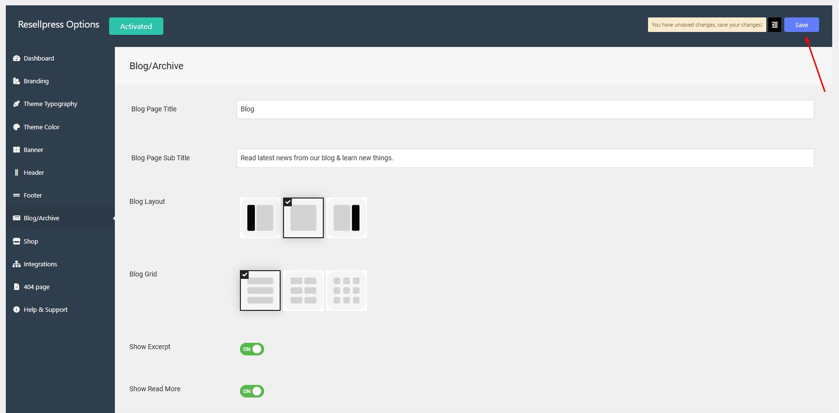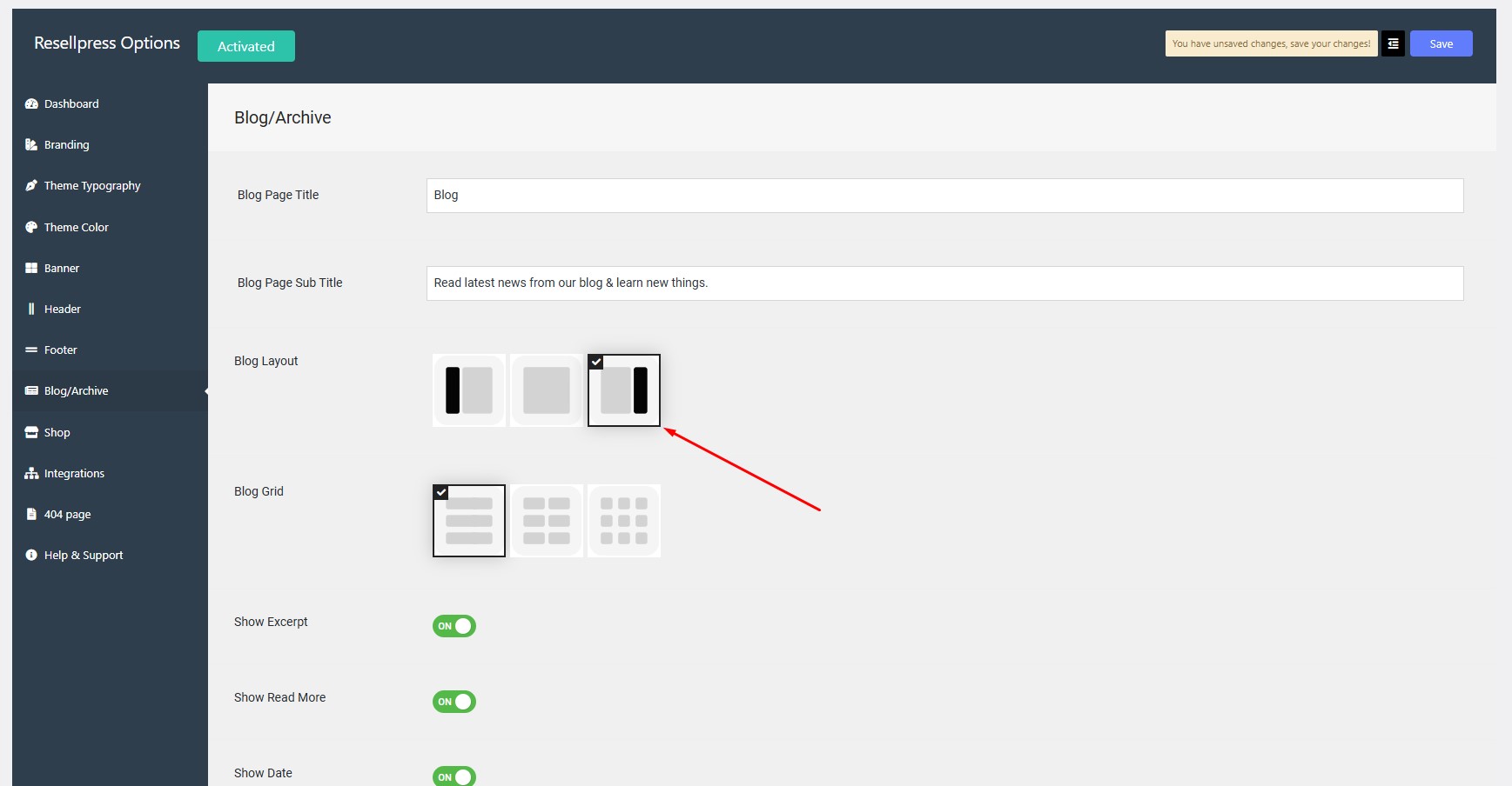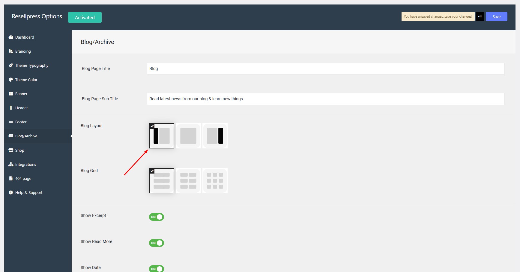 Navigate to Options > Blog/Archive > Blog Layout.